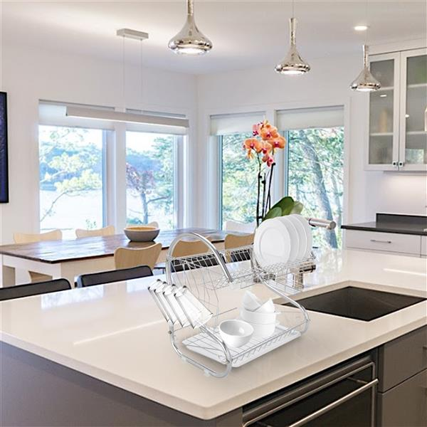 Dish drainer is a commonly used item among all households. With it, you will make full use of space in your house. Our Multifunctional S-shaped Dual Layers Bowls & Dishes & Chopsticks & Spoons Collection Shelf Dish Drainer is highly recommended for you. With meticulously plating surface process, this dish drainer is in sleek appearance and polishing gloss. Made of high-grade material, it is of great durability and reliability to sustain bowls, spoons, chopsticks and dishes etc. It has two layers for well classifying and easy reaching. Would you like to buy one for your own?