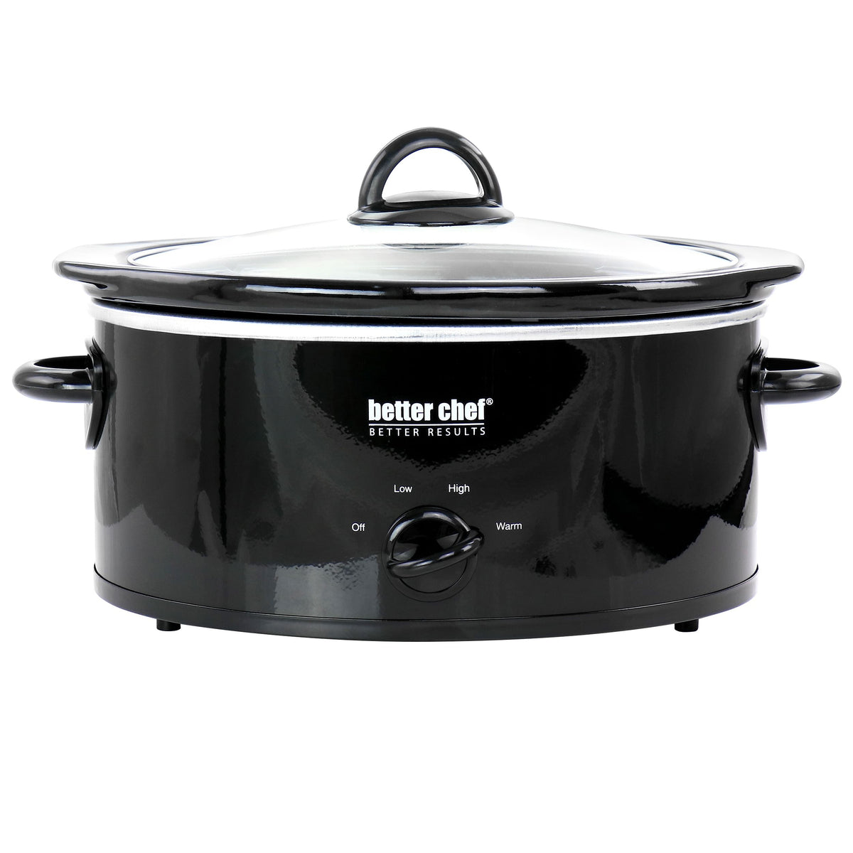 Make the most of your time with the Better Chef 3 Quart Oval Slow Cooker with Removable Stoneware Crock in Black and its convenient controlled heating. This crock's large oval shaped stone wall container keeps all the flavor together and can be easily removed from the slow cooker to the dinner table or to the refrigerator afterwards. The glass lid and stoneware container are dishwasher for maximum convenience. Get your guest drooling with savory meals from this dazzling cooker tonight.